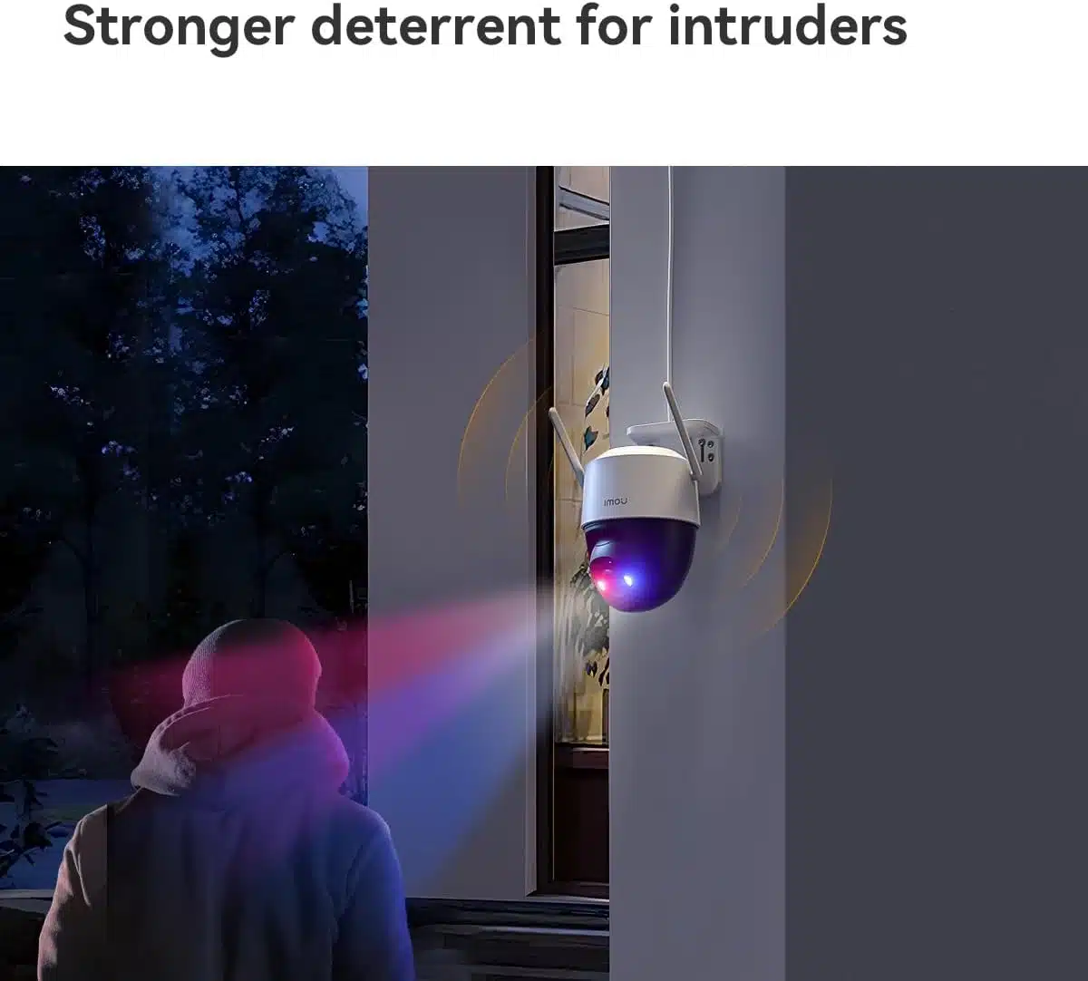 ردع نشط مع أضواء وصفارة إنذار 110 ديسيبل: منع الاختراقات بشكل استباقي مع أضواء تحذير مدمجة حمراء زرقاء وأضواء كاشفة تعمل بالحركة وصفارة أمان عالية 110 ديسيبل. عند اكتشاف الحركة، تقوم كاميرا سي سي تي في المنزلية بتنشيط التحذيرات المرئية والمسموعة لإخافة المتسللين المحتملين قبل الاقتراب