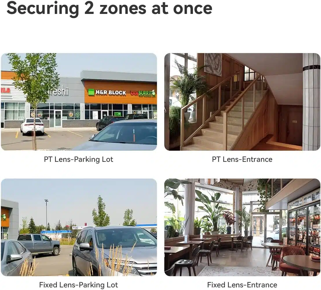 عدسات مزدوجة بدقة 5 ميجابكسل لتغطية كاملة بزاوية 360 درجة: تجمع كاميرا اي مو بين عدستين مستقلتين بدقة 5 ميجابكسل: عدسة ثابتة وعدسة مزودة بمحرك، مما يوفر تغطية واسعة لكاميرتي مراقبة تقليديتين. تدور عدسة بزاوية 355 درجة وإمالة 90 درجة، لطيفة للممرات أو الساحات أو المحيط الكبير، يوفر نظام الكاميرا المزدوجة مراقبة فائقة لمنزلك
